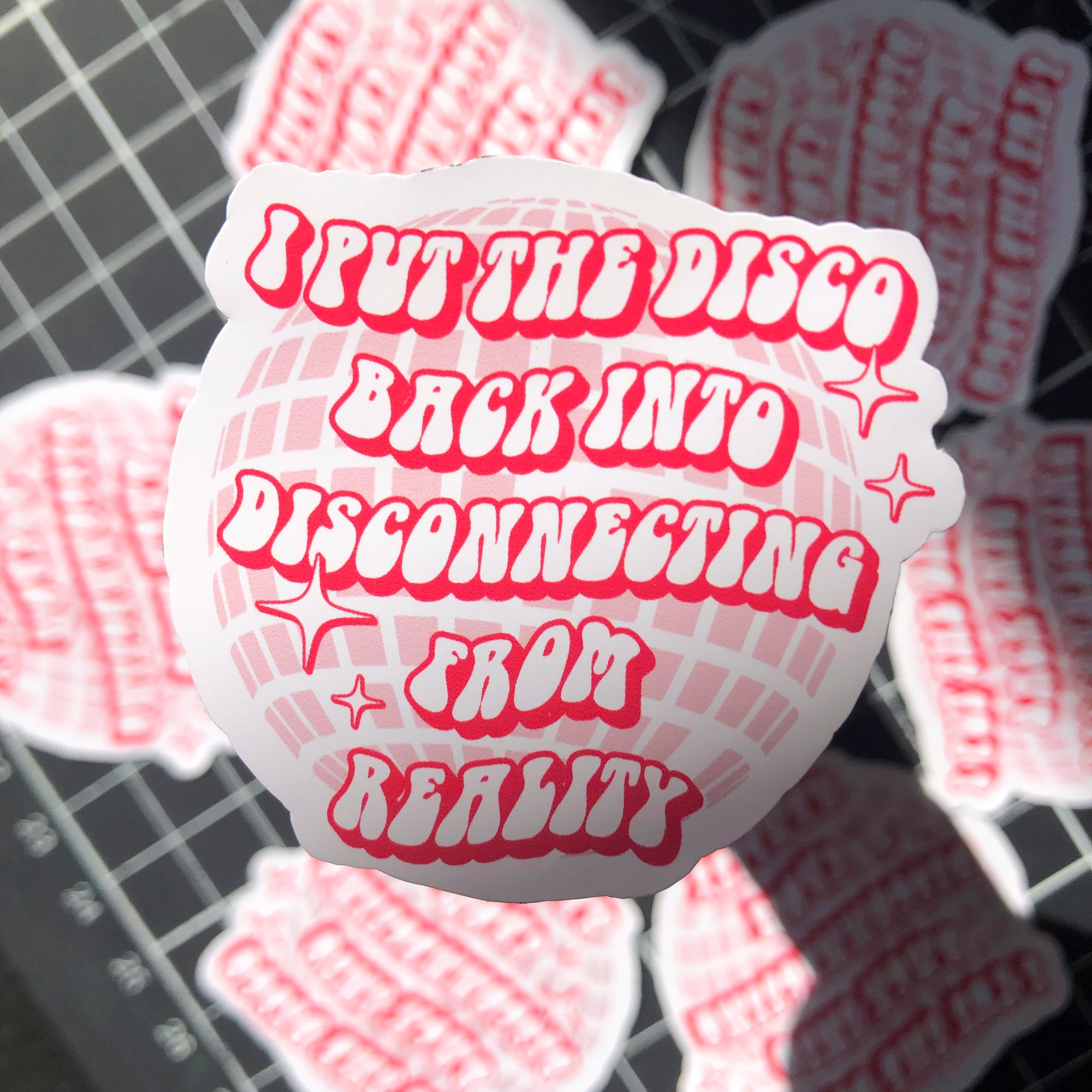 This sticker is all about bringing back that retro groove, with funky lettering dancing across a soft pink disco ball backdrop. It's got that perfect mix of nostalgia and sparkle.